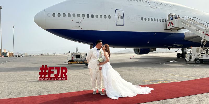 During each ceremony, a magnificently decorated jet is transformed into a palace in the sky, where the young couple will carry vivid memories of their wedding throughout their lives.